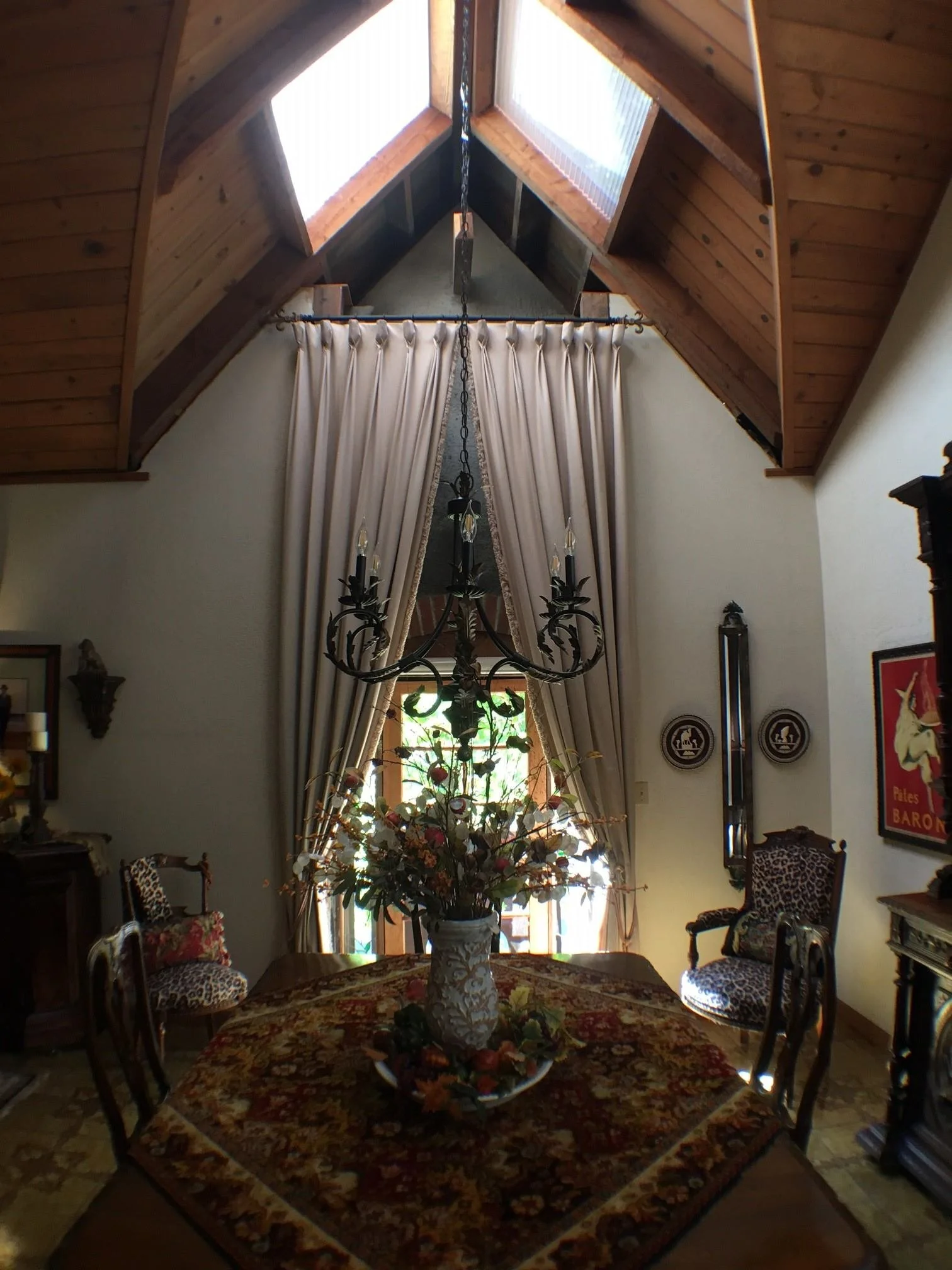 When we converted an 1888 grain barn into a home (see Thomas Foxwell Bachelder Barn, Stone Barn House here) we were limited to how many window openings we could put in each of the rooms. That is because the walls of the barn are 36" think stone! Since we couldn't cut through the stone and add a window or two for light we added skylights to the vaulted ceilings. We loved them for so many reasons but the most important one is the much-needed light. But we soon discovered that…..too much sun light coming through them quickly bleached the color from my dining room furniture. And we weren't able to control the temperature in the summer or winter, albeit we are in California, we still get some cold nights and hot days. That was a problem, and putting in shades on the inside of the skylights was the solution.